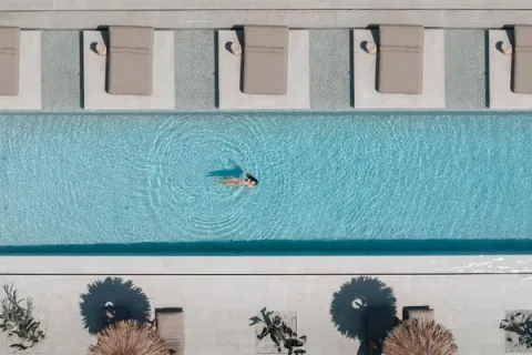 This hotel is adults-only and ridiculously photogenic. Built into a hillside above the sea, Mythic is one of those hotels where every room seems made for slow mornings and sunset wine.