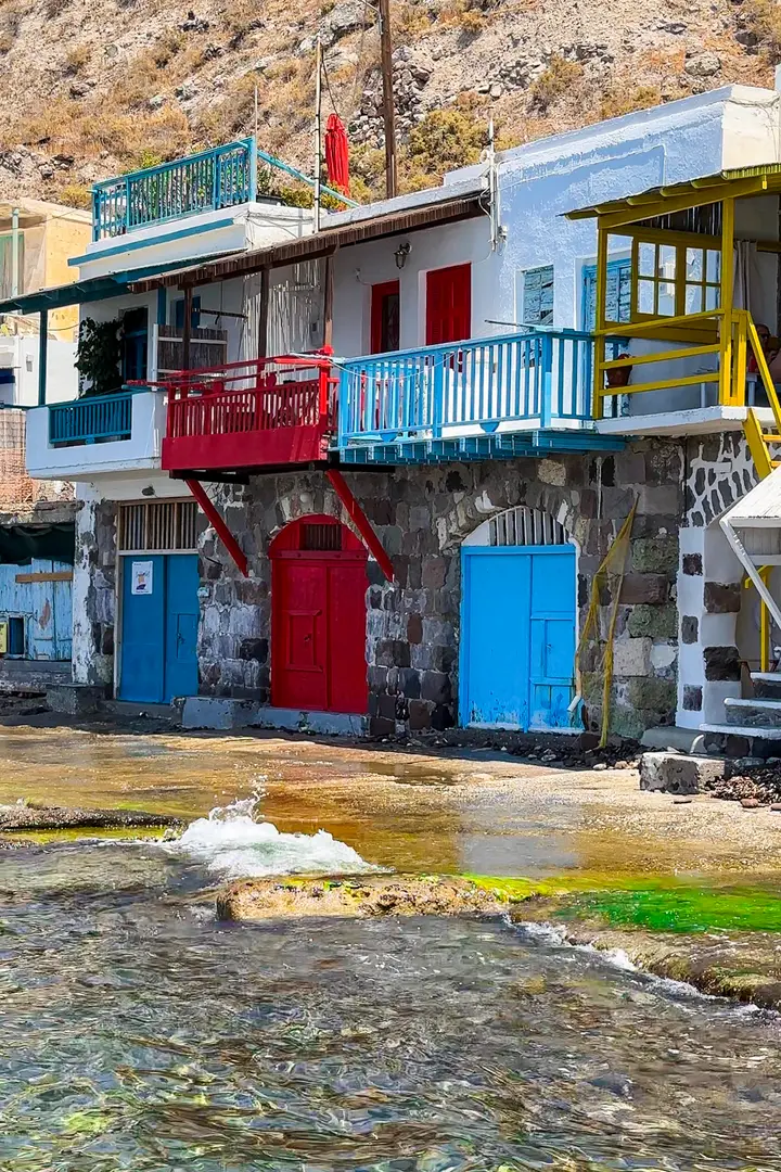 Klima is one of the most charming fishing villages in Greece. It’s filled with tiny, colorful boat houses (called syrmata) which line the shore. Fishermen used to store their boats on the ground floor and lived above them. Today, some have been converted into unique accommodations like this one if you want to spend the night here.