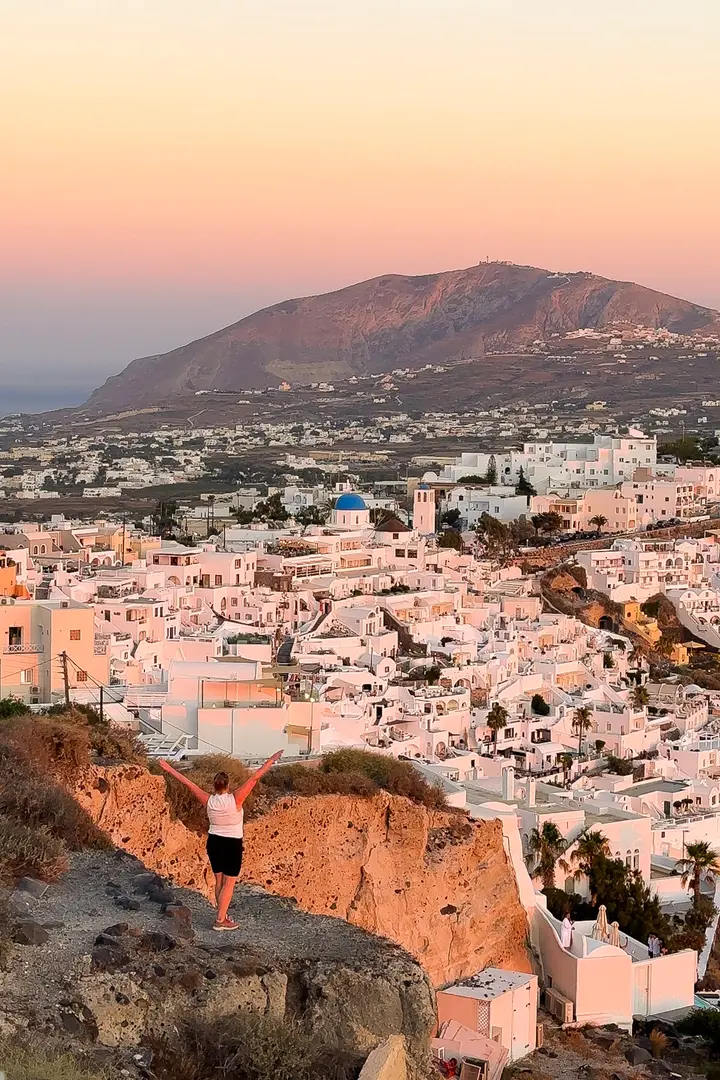 Some options are to just wander the small alleyways away from the main strip and find a view you like or book a sunset dinner with a view or a sunset cruise. Another option is to watch the sunset from the hike I will tell you more about below. It’s calmer, more intimate, and you’ll actually enjoy it instead of elbowing for space.