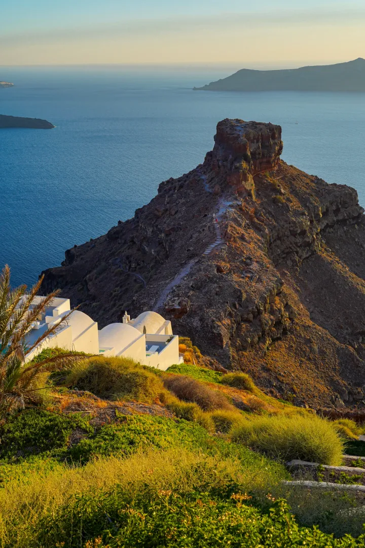 Between the two towns called Fira and Oia there’s a trail that winds along the edge of the cliffs with uninterrupted views of the volcano and endless blue sea.