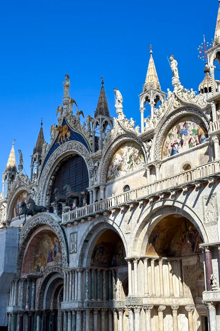 St. Mark’s Basilica is a masterpiece of Byzantine architecture and glitters with gold mosaics and intricate domes. The entry here is free, but the line can get quite long. My tip is to either arrive early or book a skip-the-line ticket.