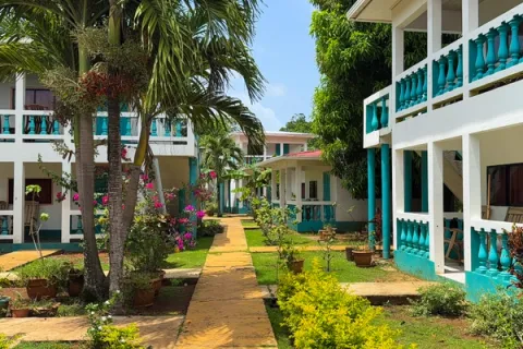 The hotel sits in lush gardens with easy beach access and plenty of charm. Plus a really great restaurant!