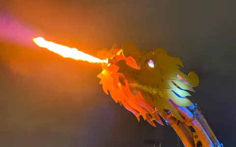 If you stay until the evening during a weekend you can watch the dragon breathe fire on the dragon bridge. This happens every Friday, Saturday and Sunday at 9PM.