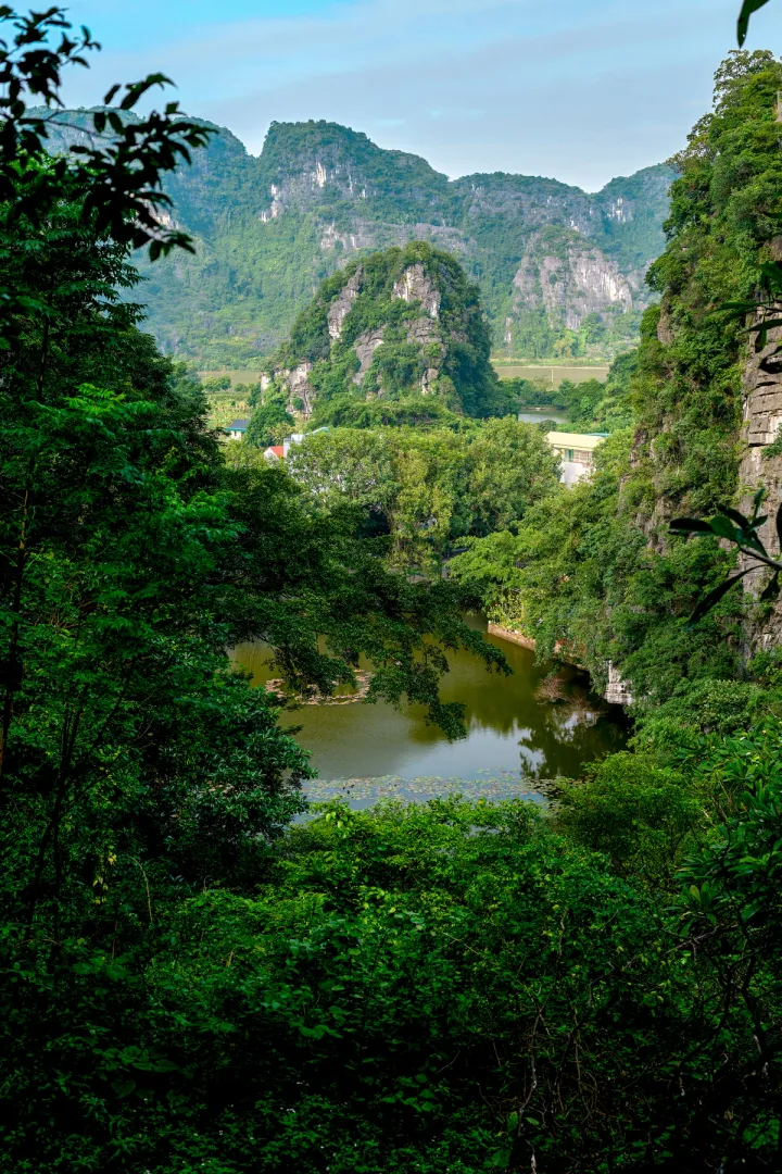 Bich Dong feels like something out of a folk tale. A stone bridge crosses a peaceful lotus pond, leading you to a series of temples tucked into the mountainside. The path winds upward to the top of the mountain through gates and caves until you reach the final cave temple at the top. The view from above overlooking the mountains, rice fields, and water is absolutely stunning.